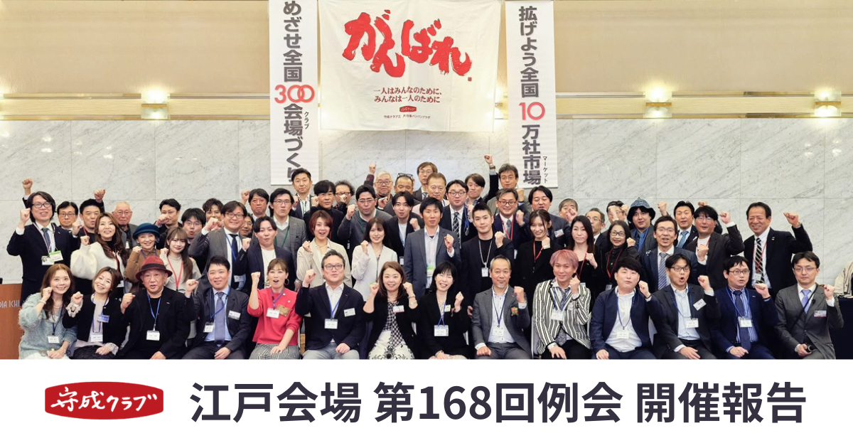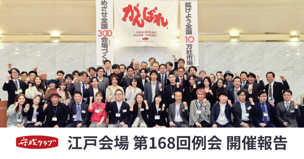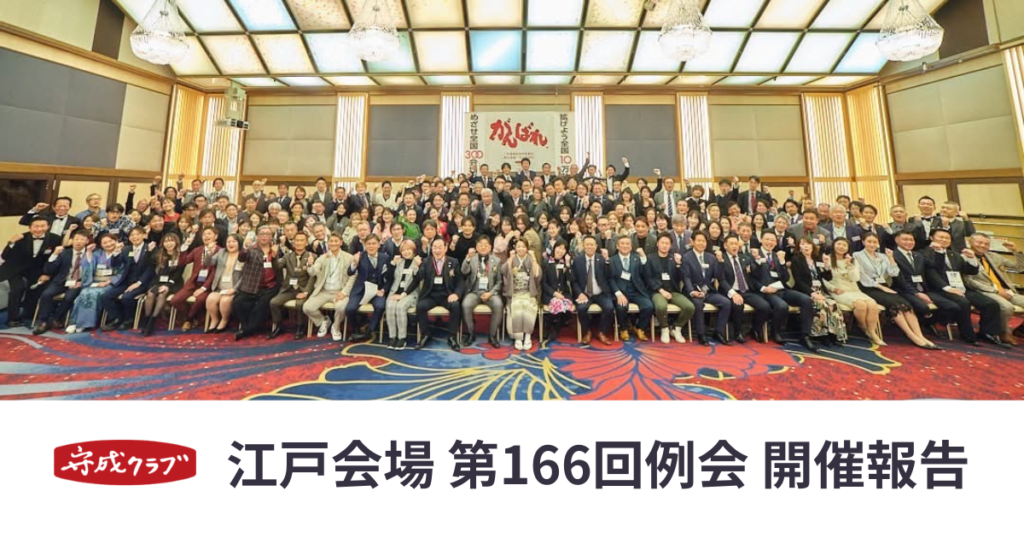 守成クラブは、単なる異業種交流会とは違い「商売繁盛」に徹底し、「本音で自社をPRし互いに商売(実利)に徹して売上を伸ばす」 ことを目的としています。